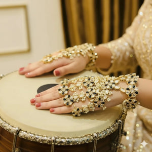 Elegant Black Gold Plated Floral Hand Chain